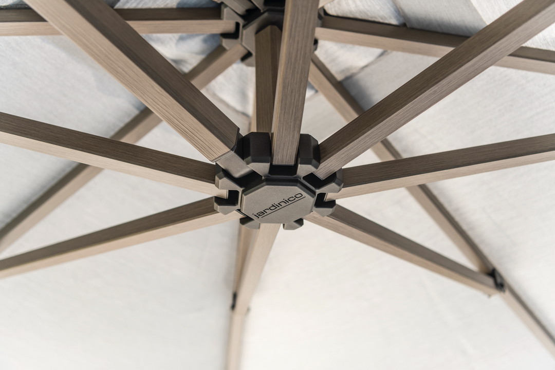 ✓ Een elegante en naadloze overgang van het frame naar de bijbehorende parasolvoet.